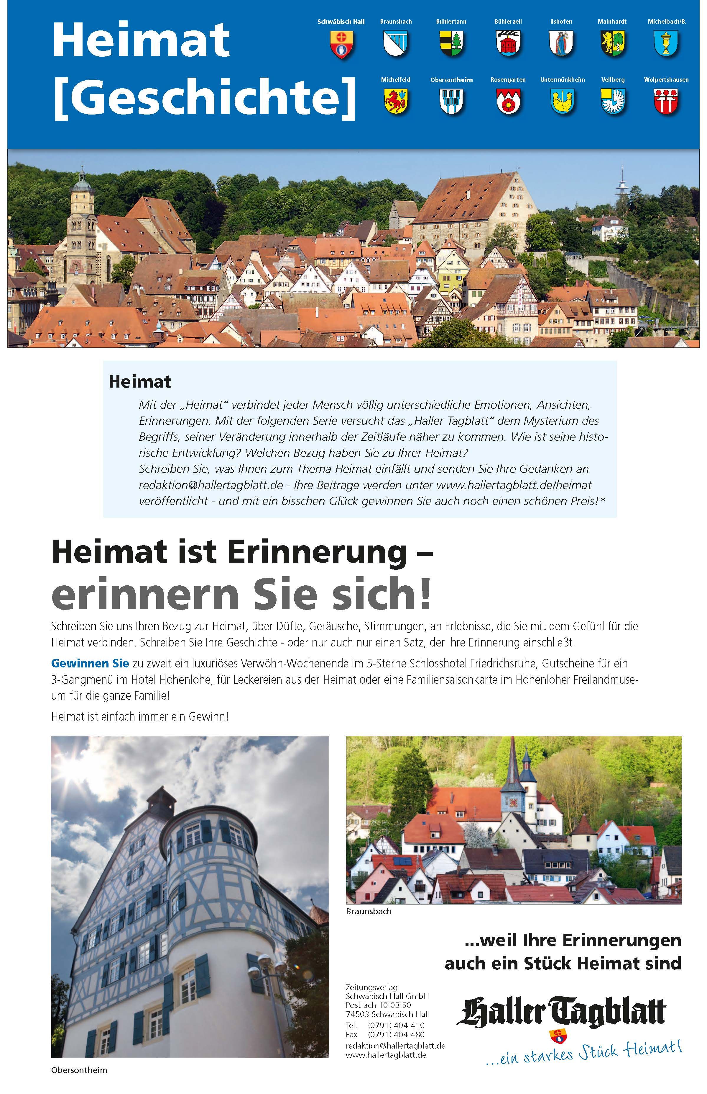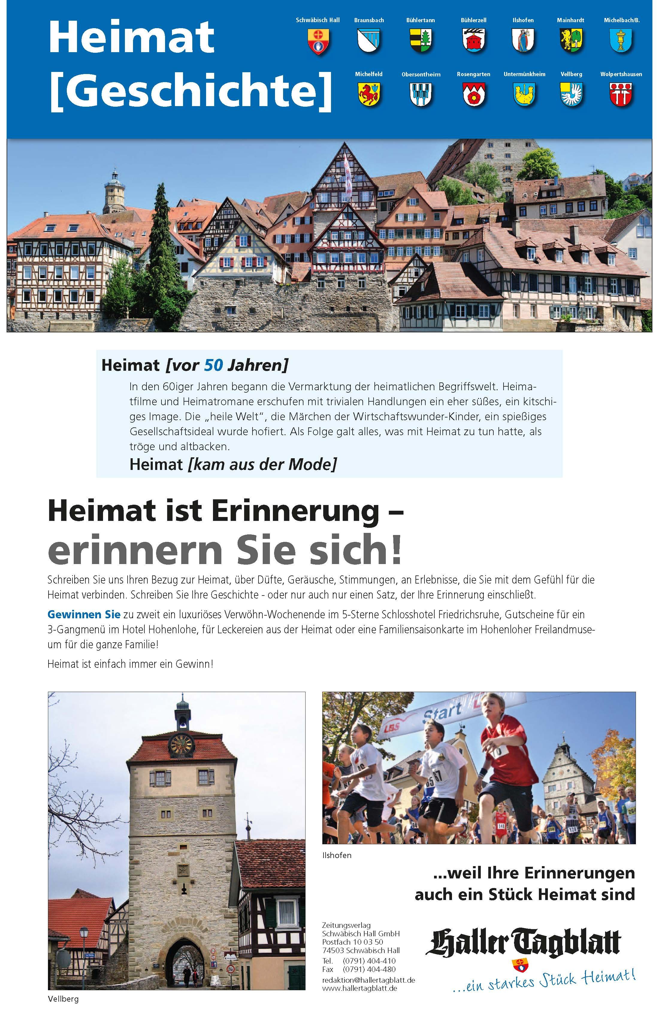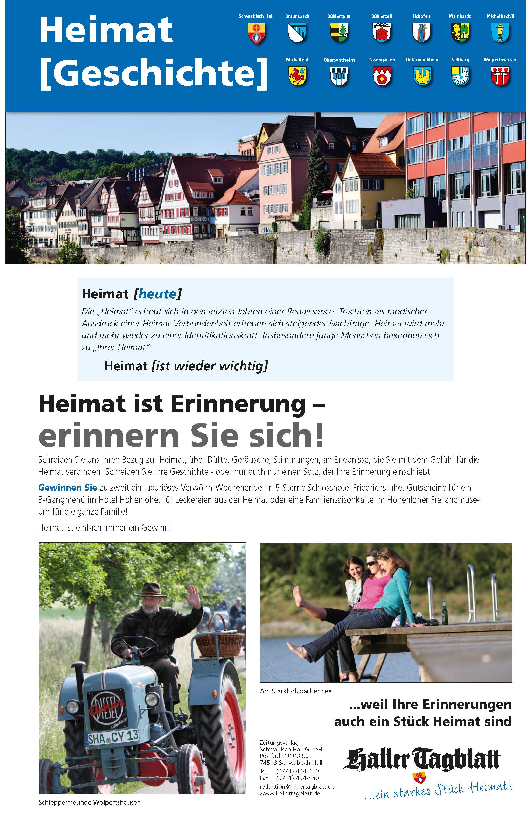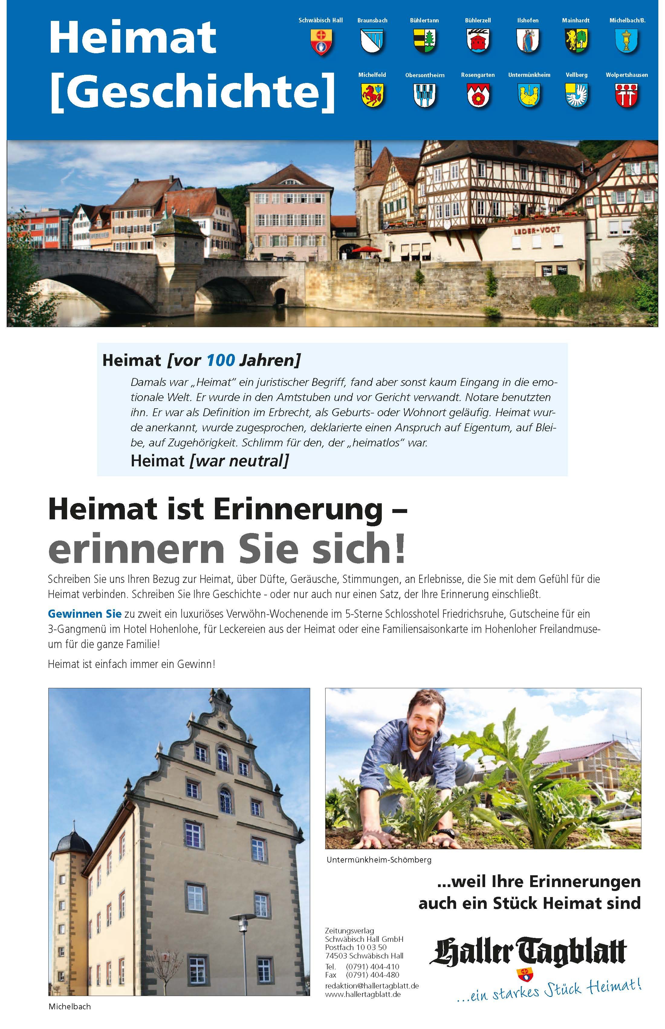Über den Begriff "Heimat" wurden die Leser durch eine Erinnerungs-Situation herangeführt. Gleichzeitig wurde im Text die Begrifflichkeit des Wortes Heimat erläutert und in einen zeitlich/geschichtlichen Kontext gebracht. Die Fotomotive, Aussagen und Layout-Elemente sind Heimat pur. Laufzeit 8 Wochen - Format 1/1 Seite. Grafik: Haller Tagblatt - Gesamtkonzeption, Text und Durchführung: dTbmedi@. Die Sujets können Sie unten anklicken und vergrößern.