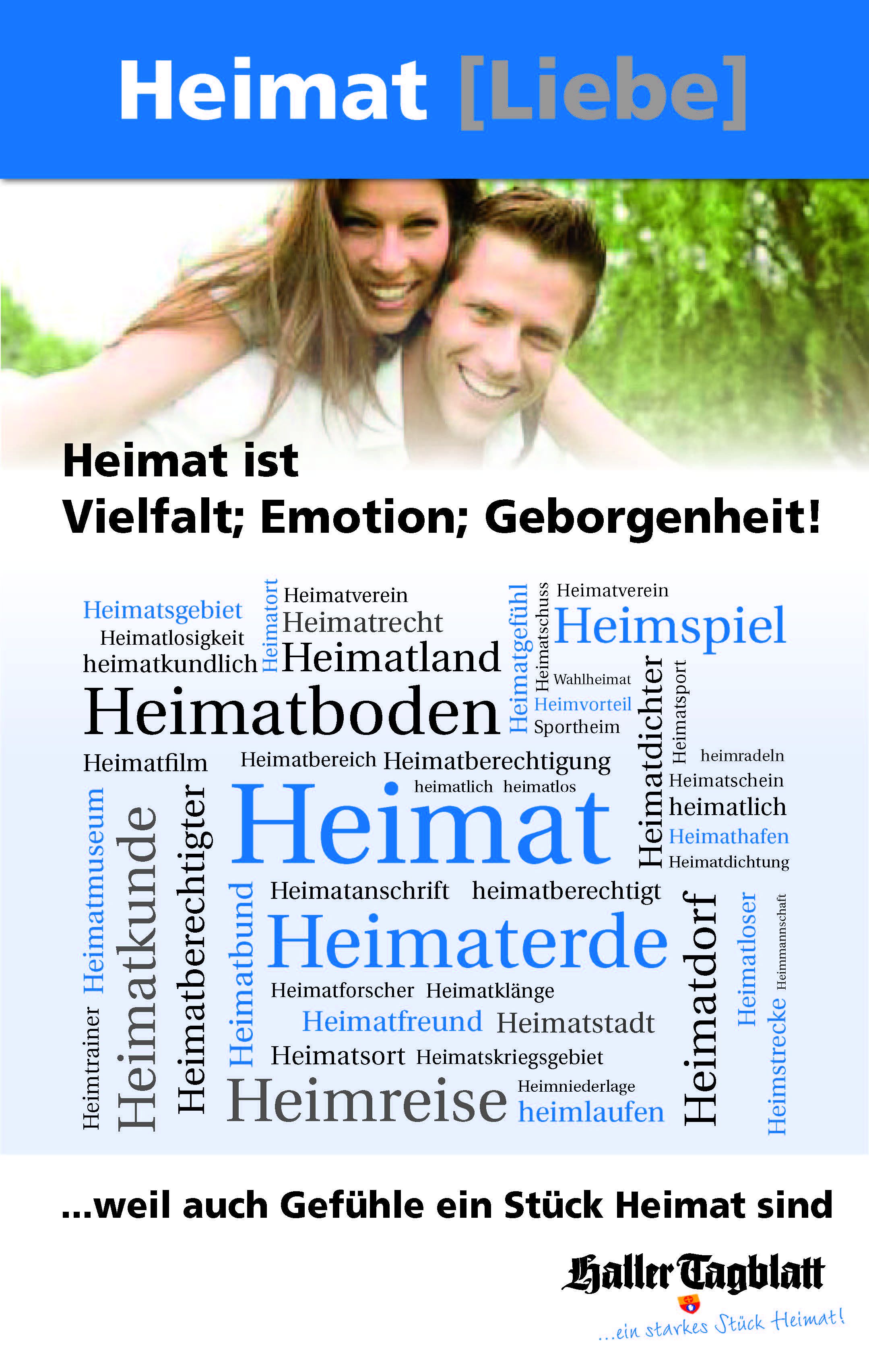 Die Kampagne für das Haller Tagblatt sollte den Bezug des lokalen Zeitungstitels zur Heimat stärken. Leserumfragen hatten ergeben, dass der Zeitung das Attribut "heimatverbunden" nicht zuerkannt wurde.